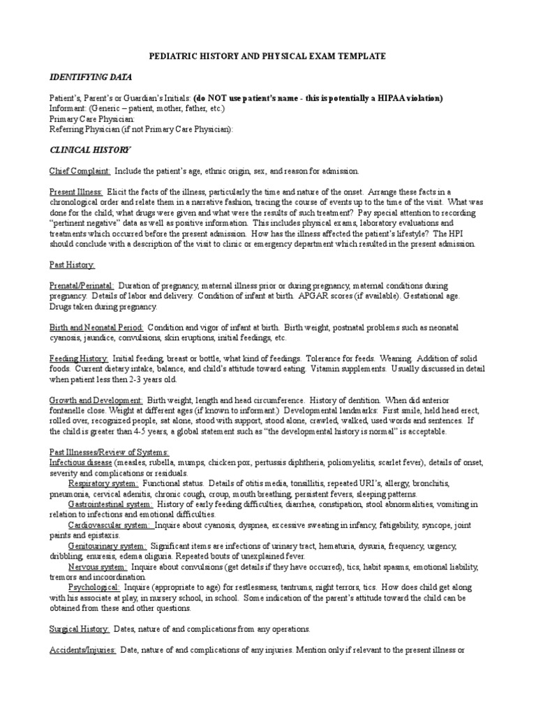 Pediatrics H&P Template Pregnancy Medical Diagnosis
