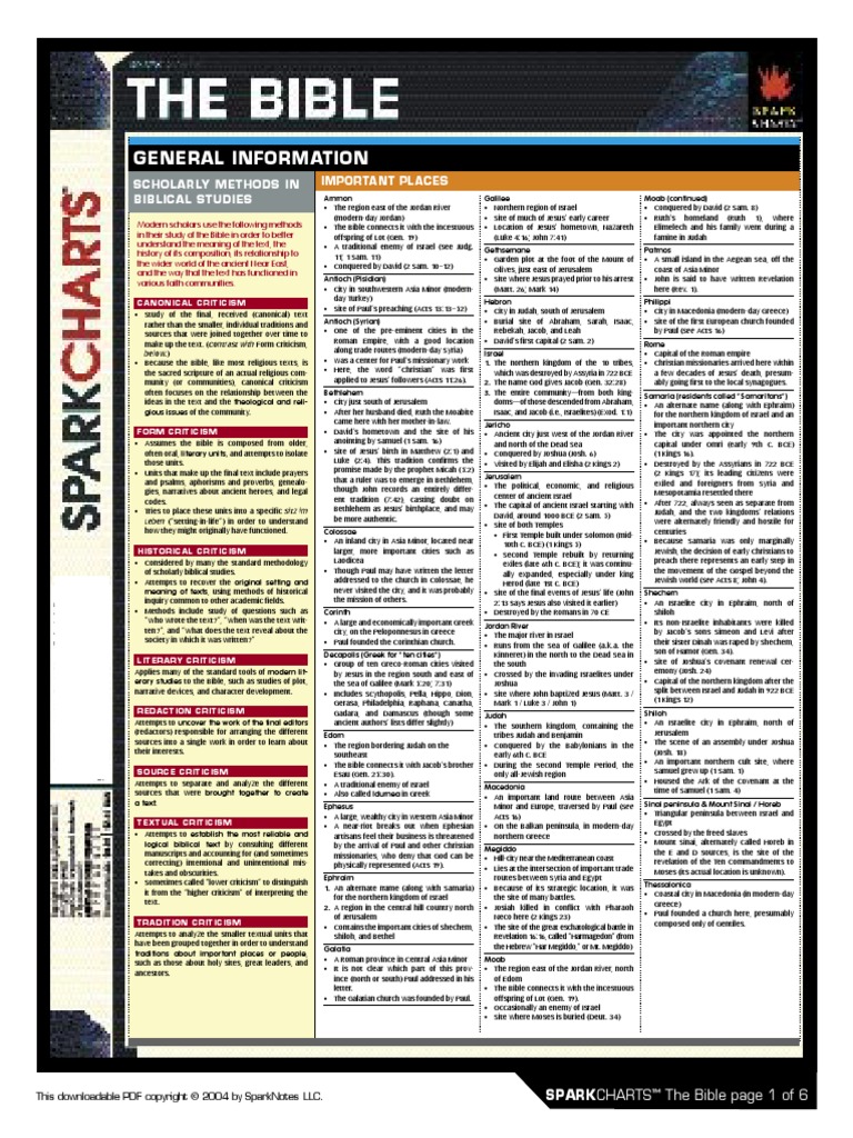 Summary of the Books of the Bible Reference Charts Thinking Kids