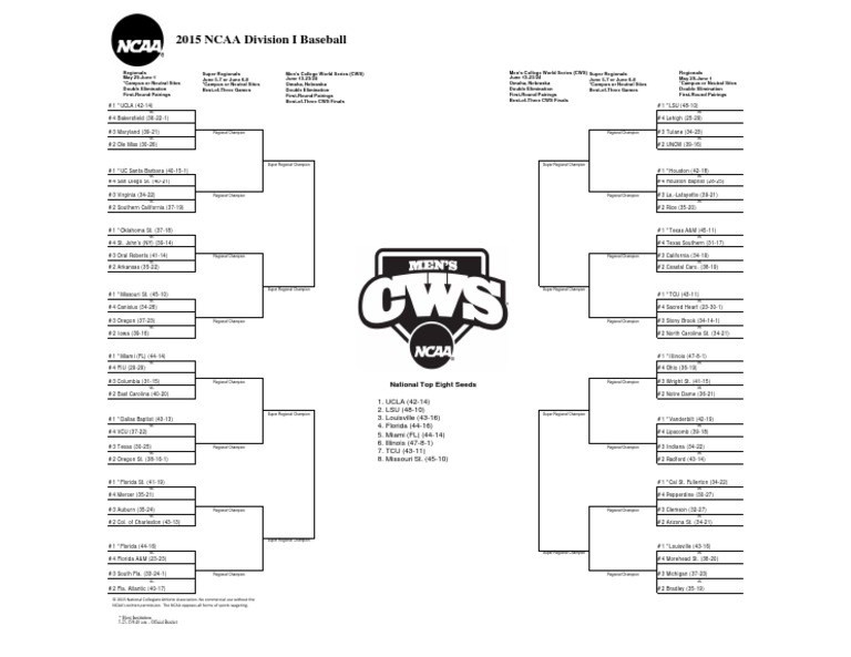 Printable Ncaa Baseball Tournament Bracket College World Series 2019